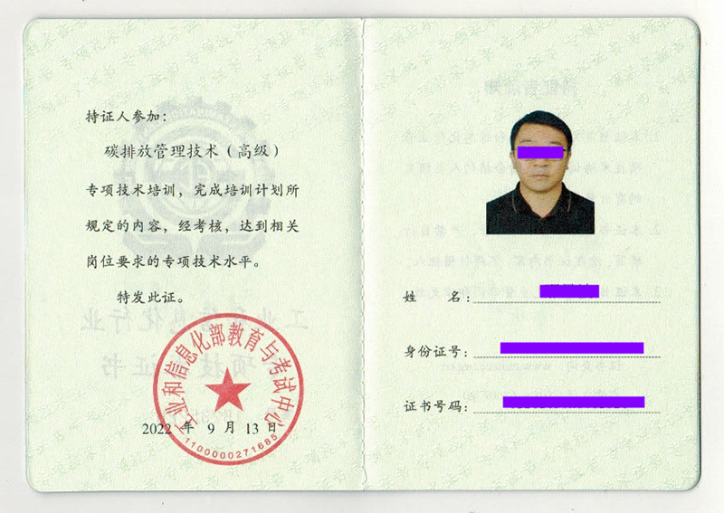 参加2022年7月批碳排放领域(双碳领域)专项技术人才培训人员,培训考核合格者,经工业和信息化部教育与考试中心核准,《碳排放管理技术》、《碳排放咨询》专项技术证书已于近日颁发,请各单位注意查收!