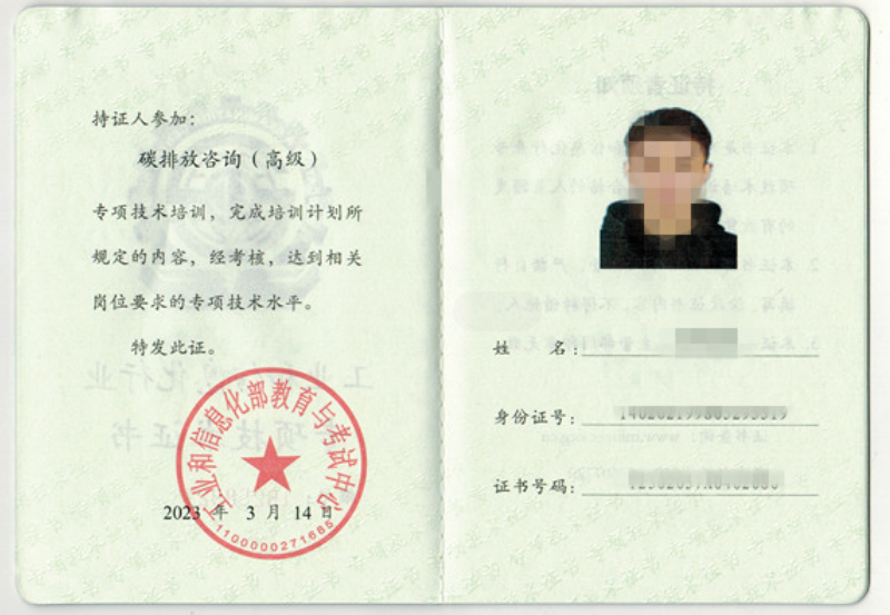 参加2023年2月批碳排放领域(双碳领域)专项技术人才培训人员,培训考核合格者,经工业和信息化部教育与考试中心核准,《碳排放管理技术》、《碳排放咨询》《碳资产管理技术》《碳交易管理技术》专项技术证书已于近日颁发,请各单位注意查收!