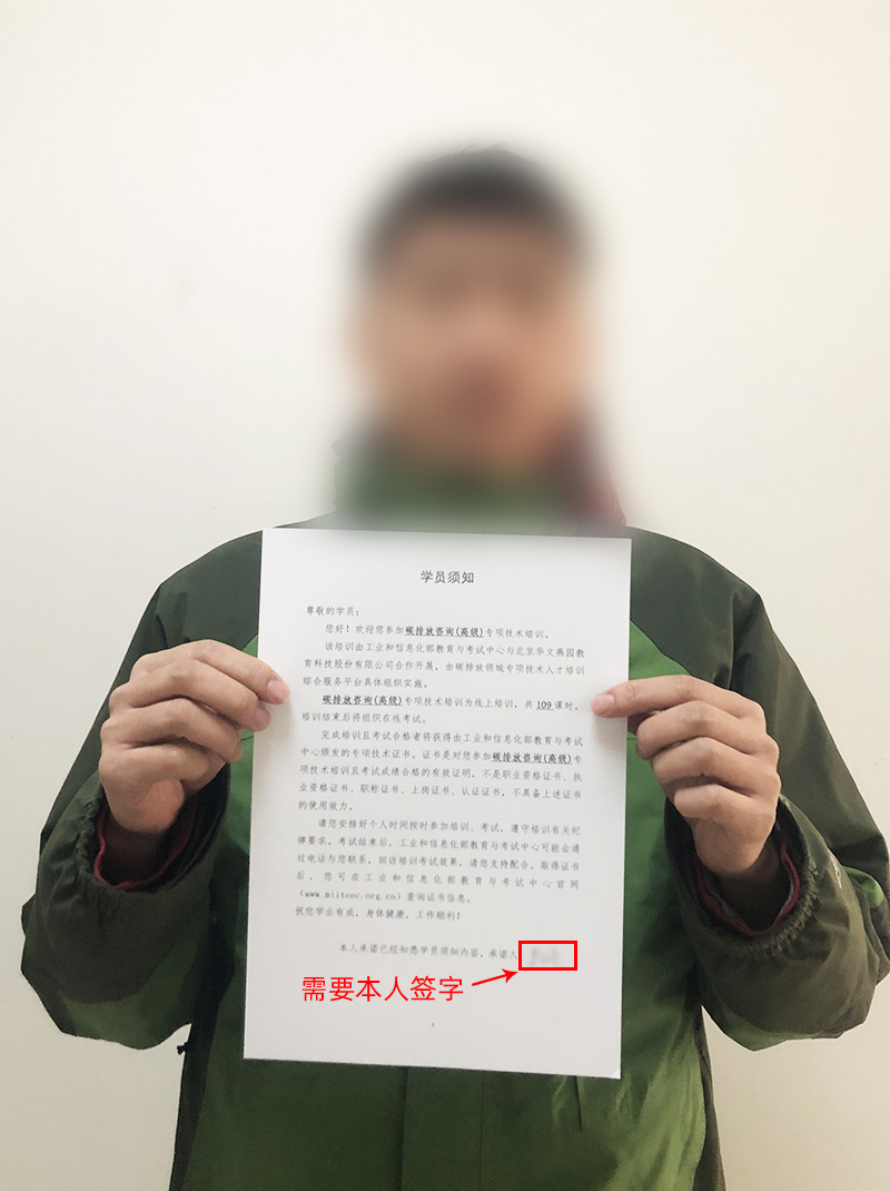 学习中心上传的“学员须知”和“手持合影 ”示例。