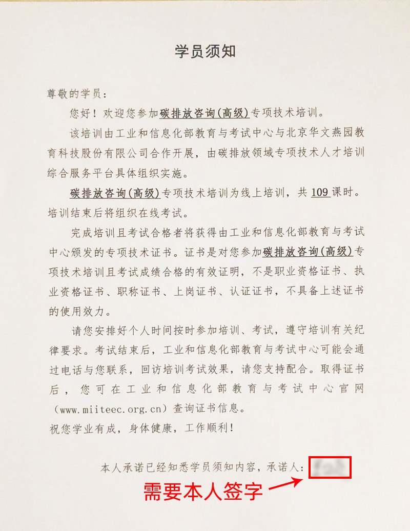 为规范组织和实施“碳排放(双碳领域)专项技术人才培训项目”的学习,请学员下载已报名课程对应的《学员须知》并打印签字上传。