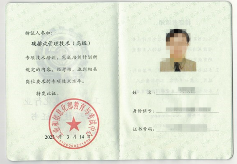 参加2023年2月批碳排放领域(双碳领域)专项技术人才培训人员,培训考核合格者,经工业和信息化部教育与考试中心核准,《碳排放管理技术》、《碳排放咨询》《碳资产管理技术》《碳交易管理技术》专项技术证书已于近日颁发,请各单位注意查收!