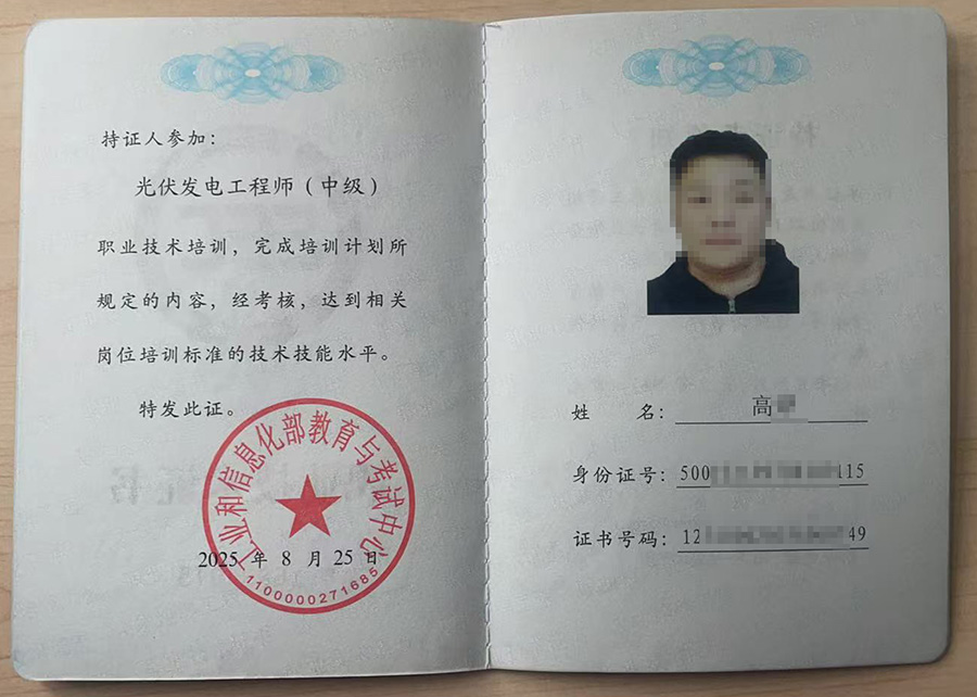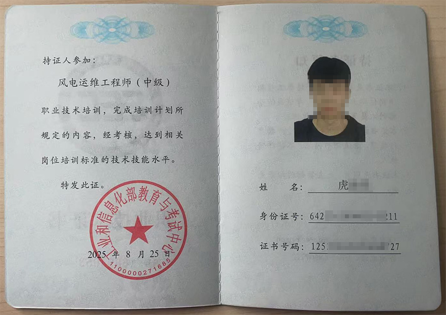 参加2025年7月19号-20号考试批的新能源职业技术人才培训人员,培训考试合格者,经工信部教育与考试中心核准,《风电运维工程师》、《光伏运维工程师》、《光伏发电工程师》、《火电运维工程师》、《储能运维工程师》、《储能系统工程师》职业技术证书已于近日颁发,请各单位注意查收!